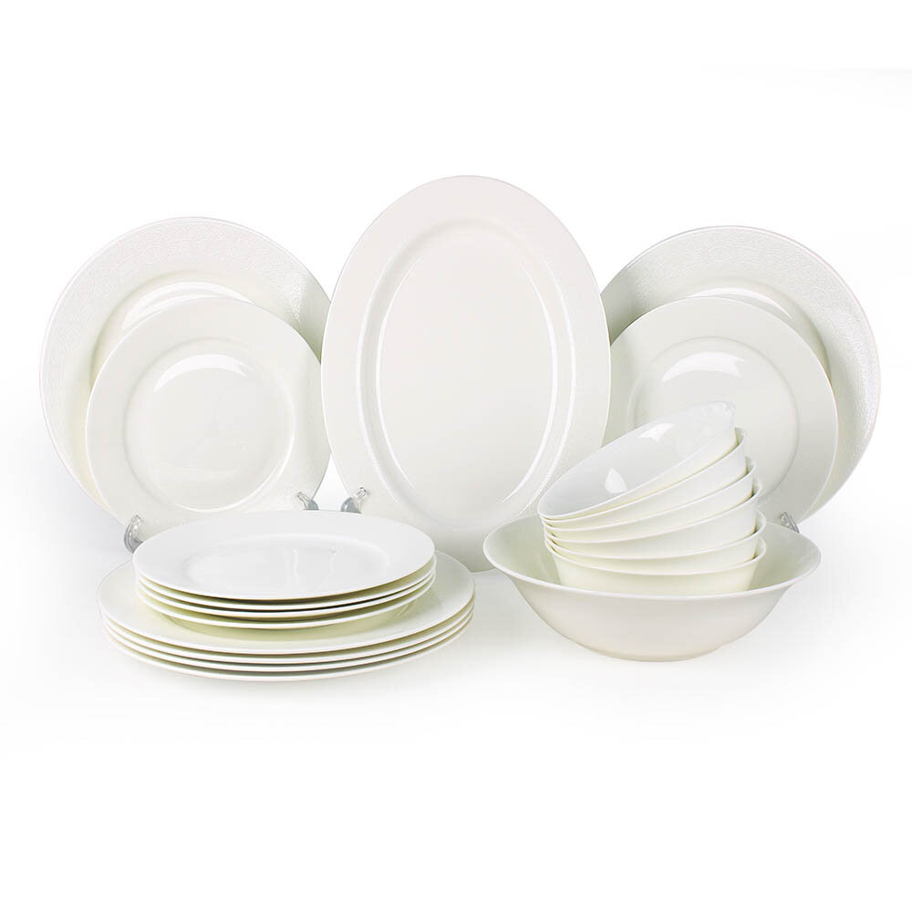 | Комплектация | Тарелка обеденная 25,5см - 6шт; тарелка суповая 500мл - 6шт; тарелка закусочная 20,5см - 6шт; блюдо 31,5x22,5см - 1шт; салатник 1,2л - 1шт. |
