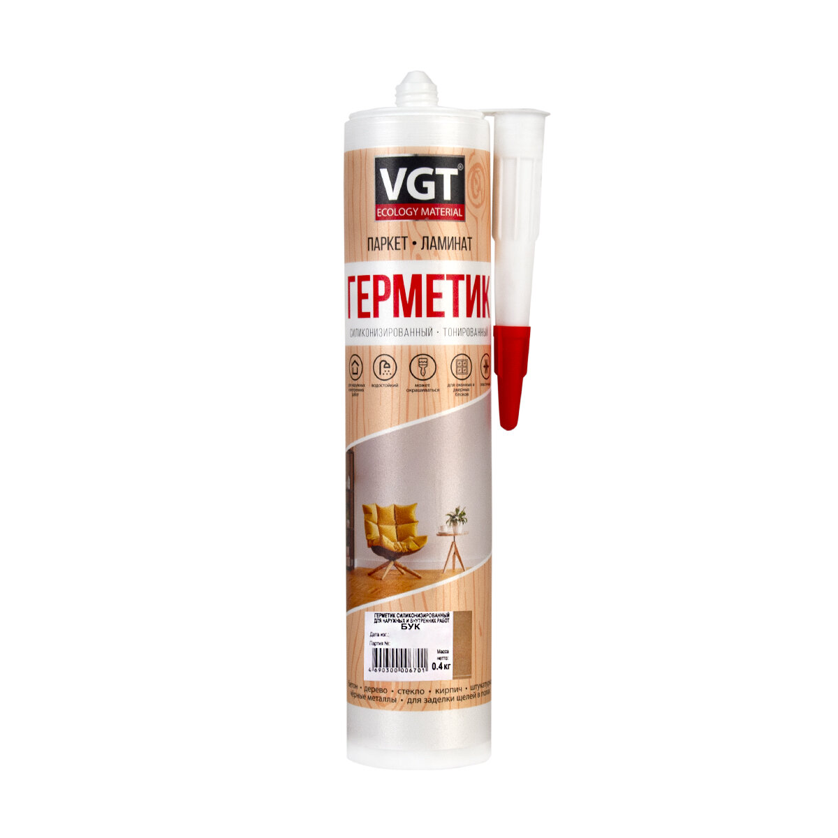 герметик акриловый VGT силиконизированный для дерева 04кг белый арт.13392 11604929
