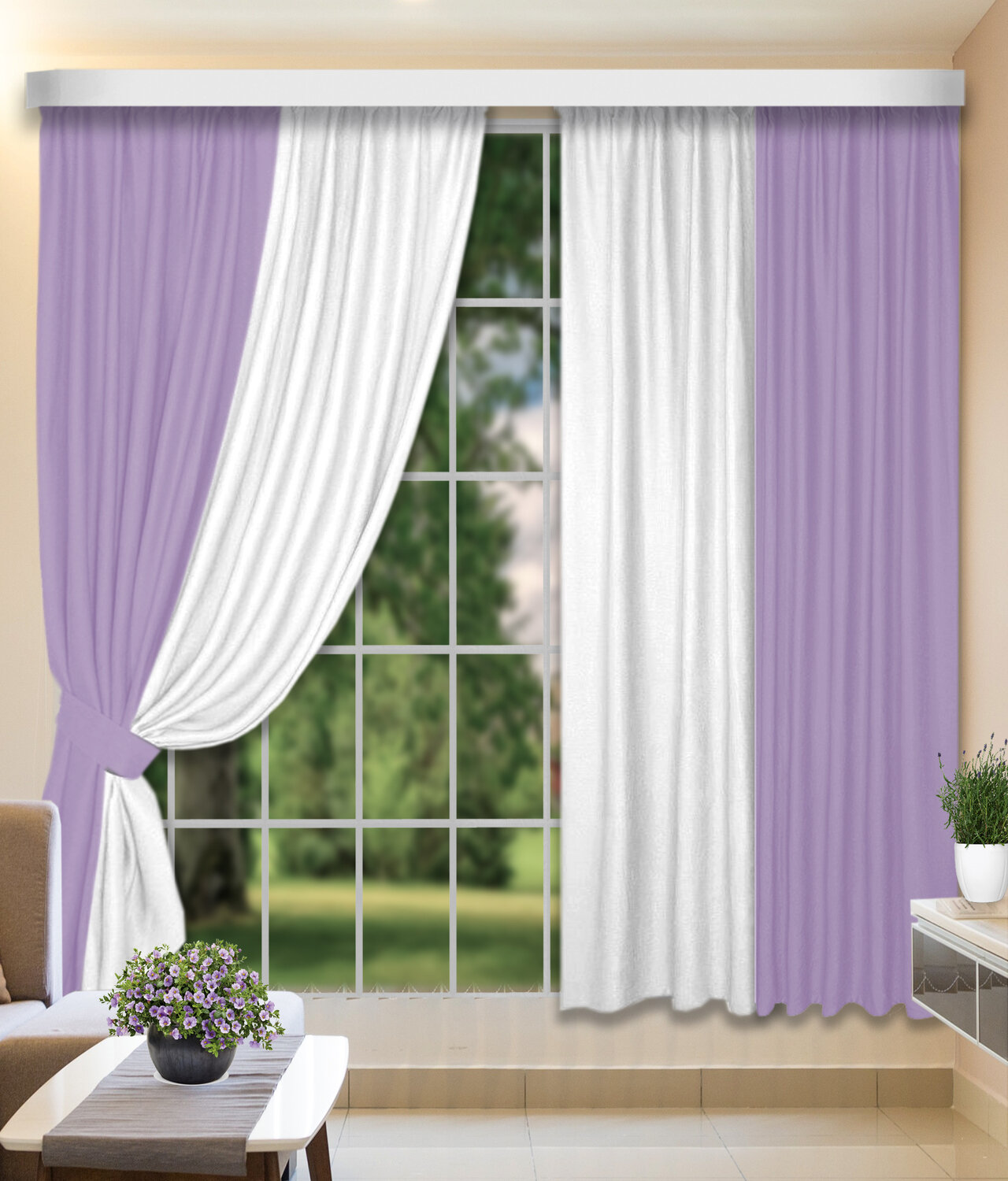 Классические шторы Maya цвет: сиреневый белый (160х250 см - 2 шт) КаСЛ (ksl800609)