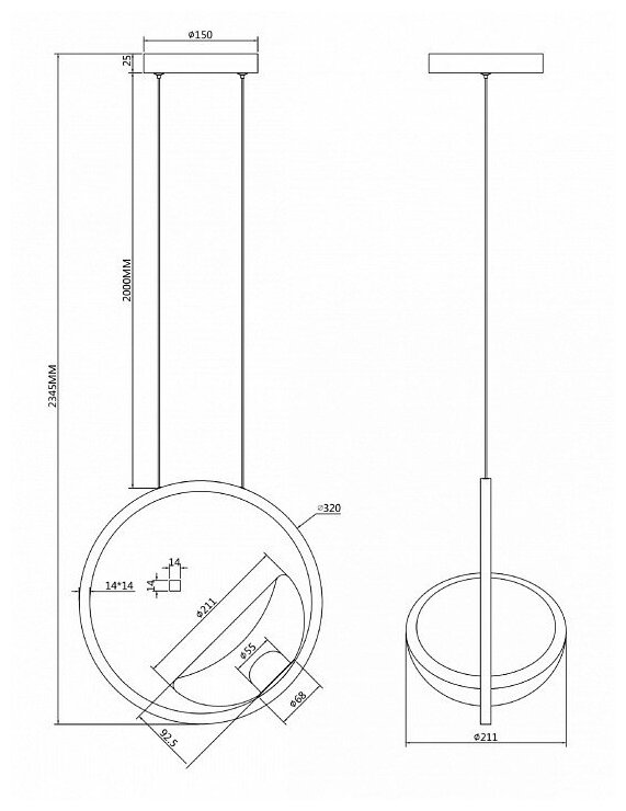 - Высота плафона:92.5 мм.