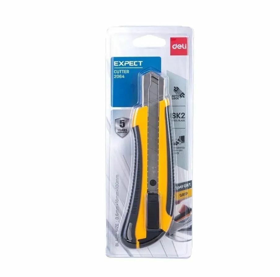 Нож канцелярский Deli шир.лез.18мм фиксатор усиленный сталь ассорти блистер 2064