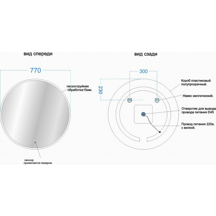 | Комплектация | гарантийный талон; зеркало; инструкция; крепеж; шнур с вилкой |