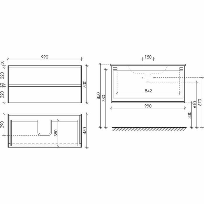 - Размеры тумбы (ШхГхВ): 99x45x50 см.