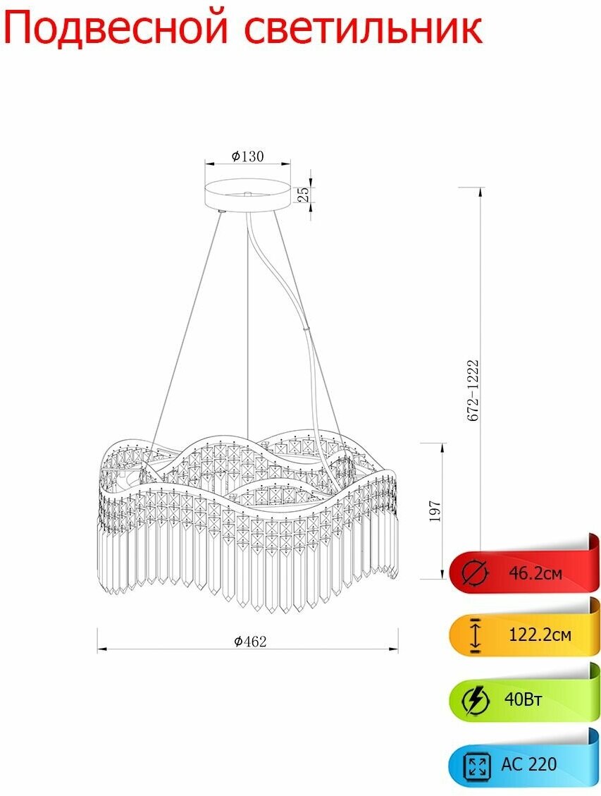 Люстра подвесная Noa - продукт известной компании Maytoni (Германия). Имеет максимальную мощность 720 Вт. Отлично подойдет для таких мест, как гостиная, прихожая и коридор, спальня. Впишется в интерьеры следующих стилей: классический.