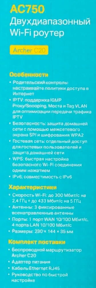 Беспроводной маршрутизатор TP-LINK синий ARCHER C20