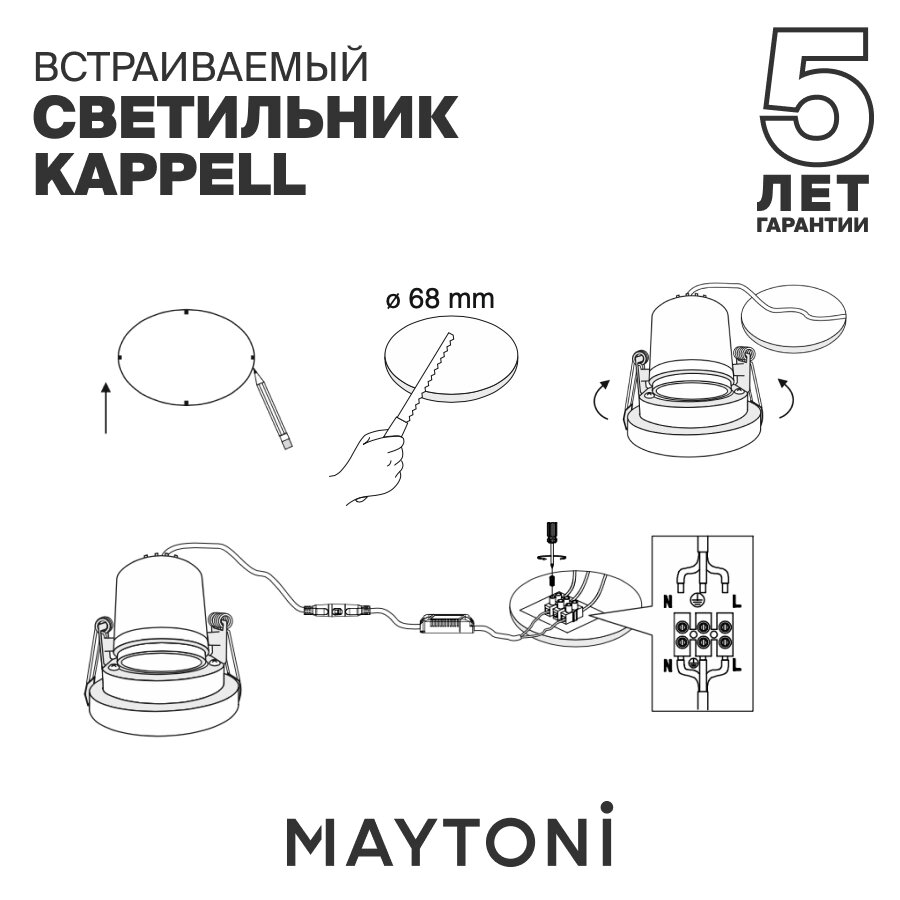 | Монтажное отверстие (диаметр) | 68 мм |