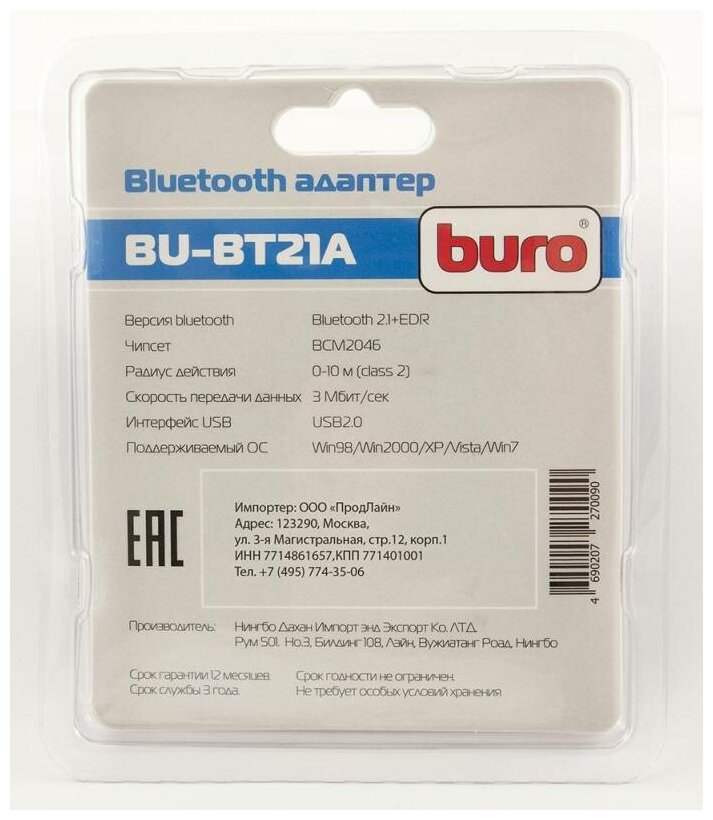 Сервис сравнения цен СкидкаГИД предлагает сравнить цены на товар «Адаптер USB Buro Bluetooth 2.1+EDR class 2 10м черный BU-BT21A»