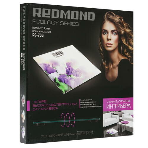 Весы Redmond RS-733 станут прекрасным помощником для всех тех, кто следит за своим весом и стремится держать себя в форме. Красочный дизайн непременно понравится всем представительницам прекрасного пола. Корпус данной модели выполнен из ультратонкого закаленного стекла. Максимальная нагрузка весов составляет 180 кг, а несколько высокочувствительных датчиков гарантируют точность измерений.