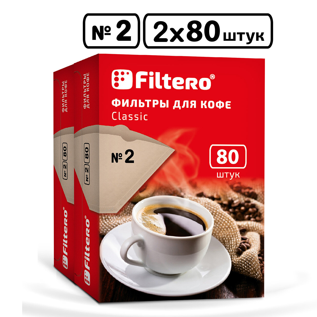 Бумажные одноразовые фильтры Filtero для кофеварок капельного типа, пуроверов, калита, кемекс, размер №2 соответствует стандарту «1х2» для кофеварок на 4-8 чашек.