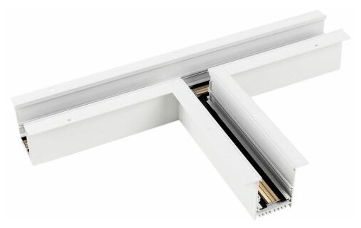 Тройной прямой коннектор для встраиваемого трека MAG-TRACK-4560-F. Материал алюминий, цвет белый. Размеры 415x245x75x60мм. DC24V.