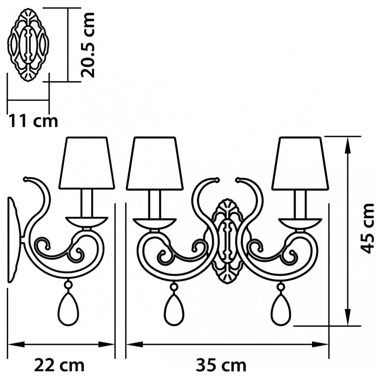 | Вид светильника | Бра с 2 лампами |