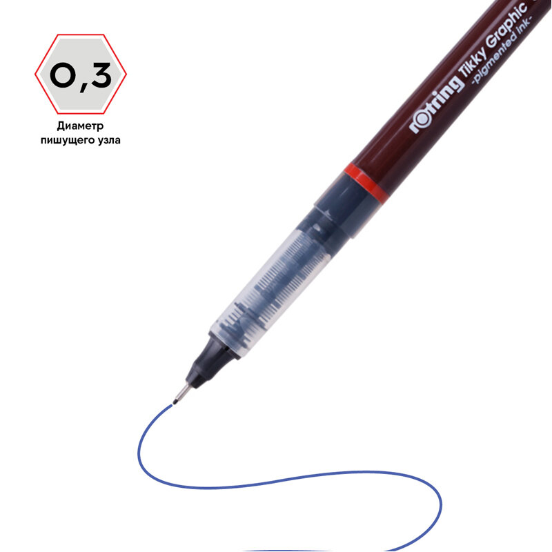 Rotring Tikky Graphic с перманентными чернилами.Технология Free Ink для постоянного и стабильного качества линии и длительного использования. Перманентные светостойкие и водостойкие чернила для долговечных рисунков. Окно уровня чернил, показывающее количество чернил, оставшихся в резервуаре.