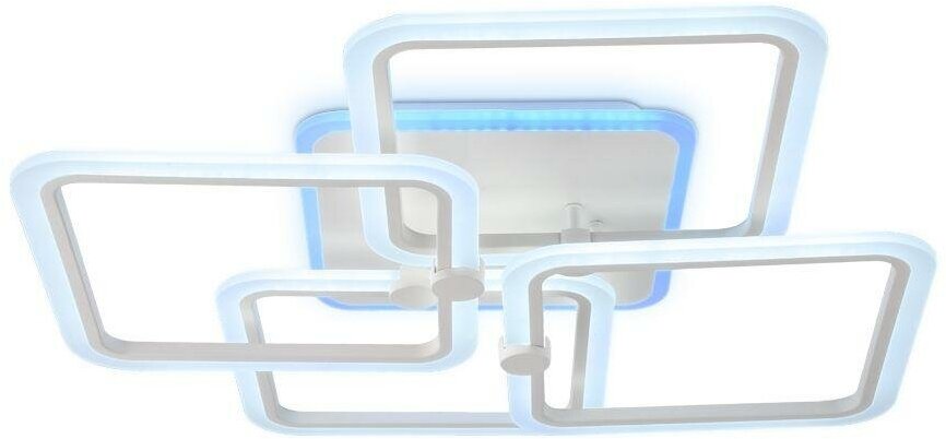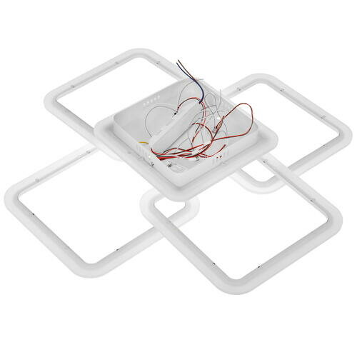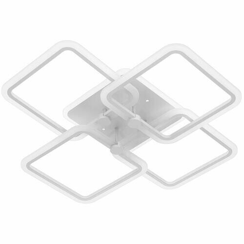 Люстра выполнена в современном стиле и сочетает в себе металл и акрил. Арматура светильника имеет белый цвет, а плафон – белый. Материалы арматуры – металл, плафона – акрил.