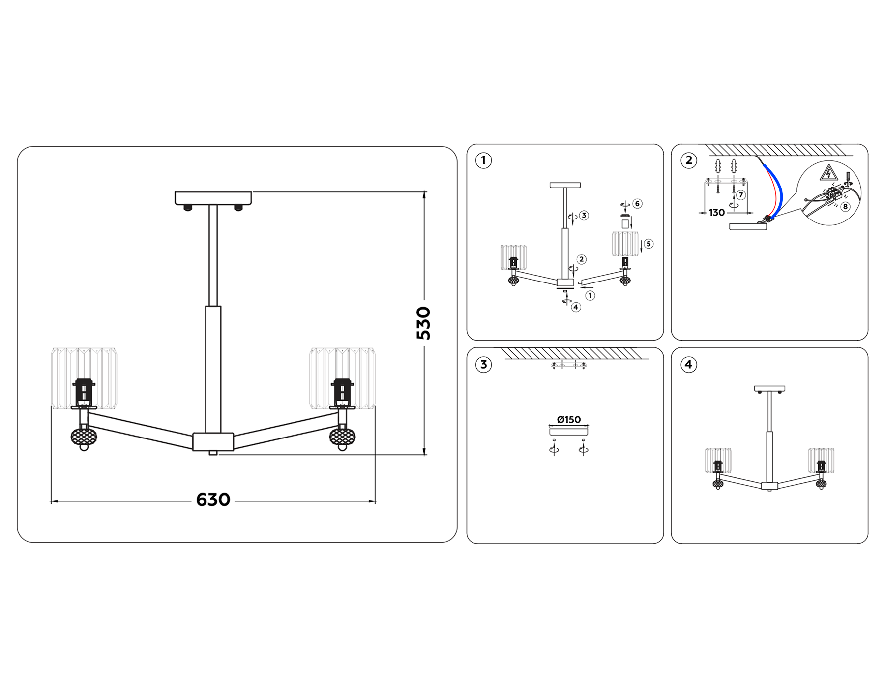 Производитель Ambrella light оснастил данную модель лампами с цоколем E14 и максимальной мощностью 40 Ватт.