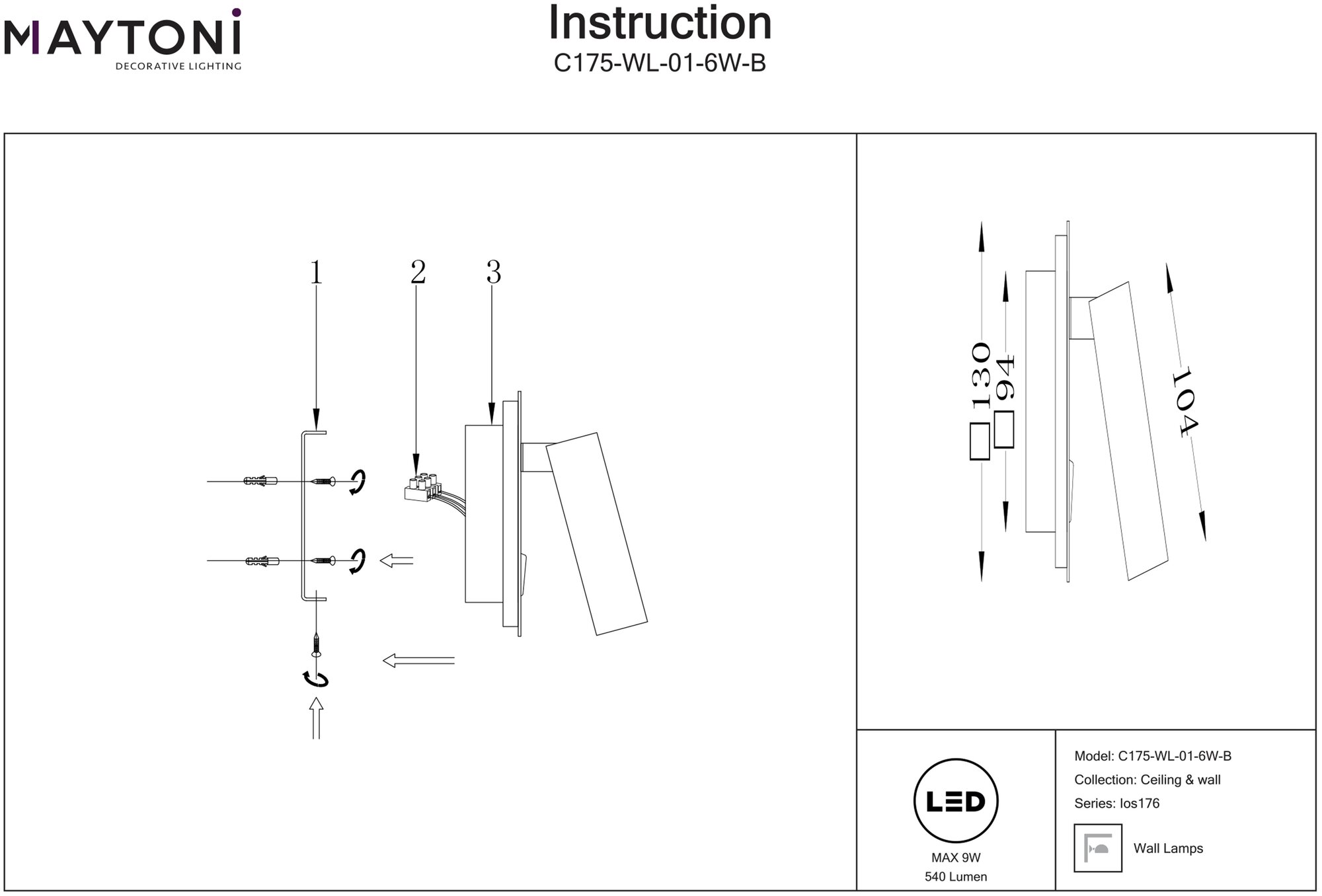 | Артикул | C175-WL-01-6W-B |
