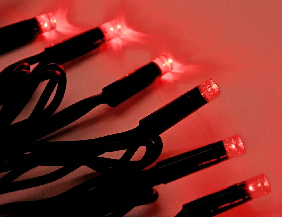 Гирлянда Нить 10м Красная 24В, 100 LED, Провод Черный Каучук, IP55, Кабель питания заказывается отдельно.