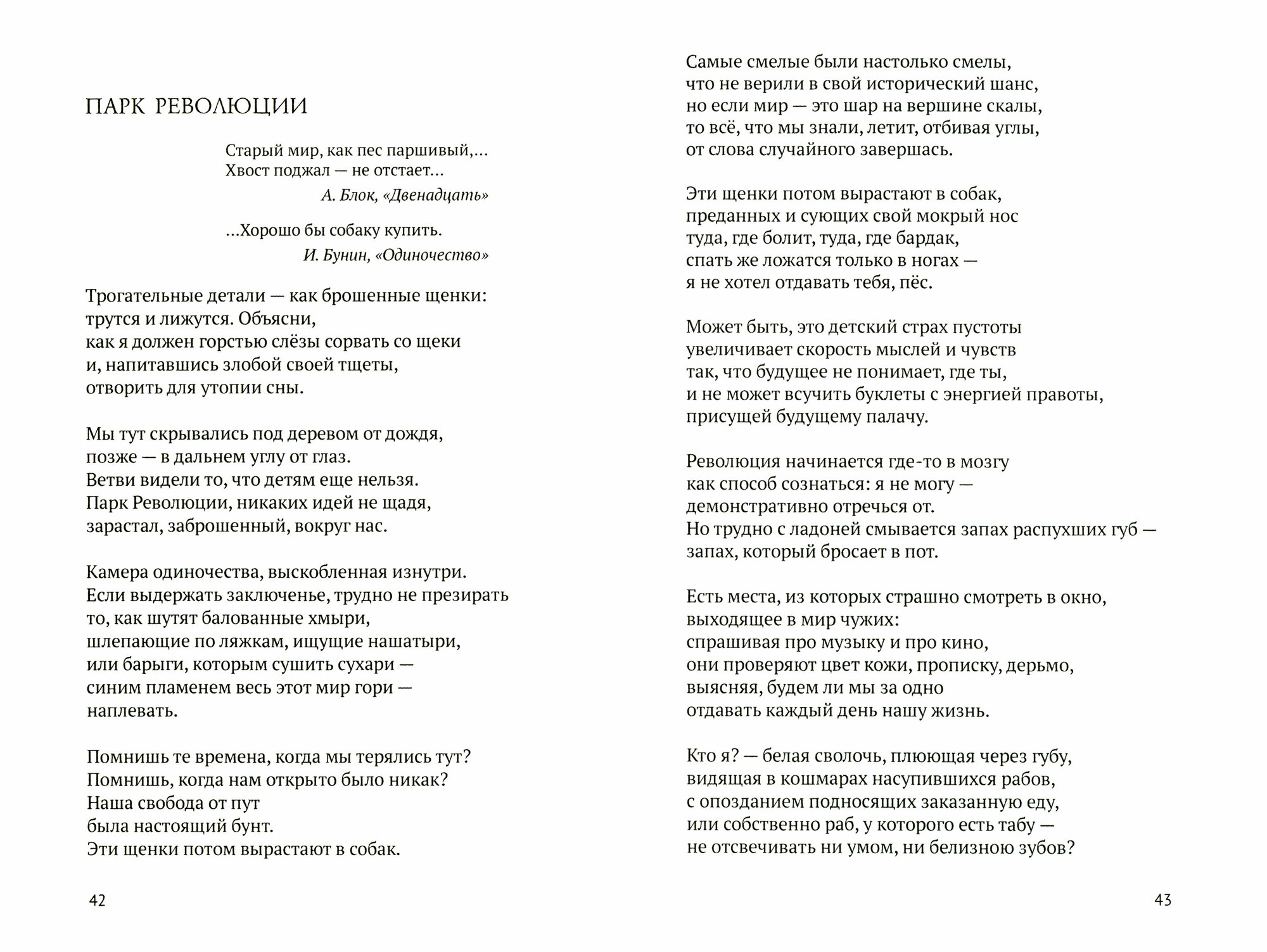 Грамотно составлены разделы. Первый, например, состоит из стихотворений с эпиграфами (от Oxxxymiron’а до Есенина!). Тексты разные, в смысле, есть «потише» - лиричные, «погромче» – с констатацией, и всему этому веришь. В общем, книга, к которой хочется возвращаться. Тем более что она эстетичная - удобный формат, приятная на ощупь бумага, красивая и немаркая (!) обложка.