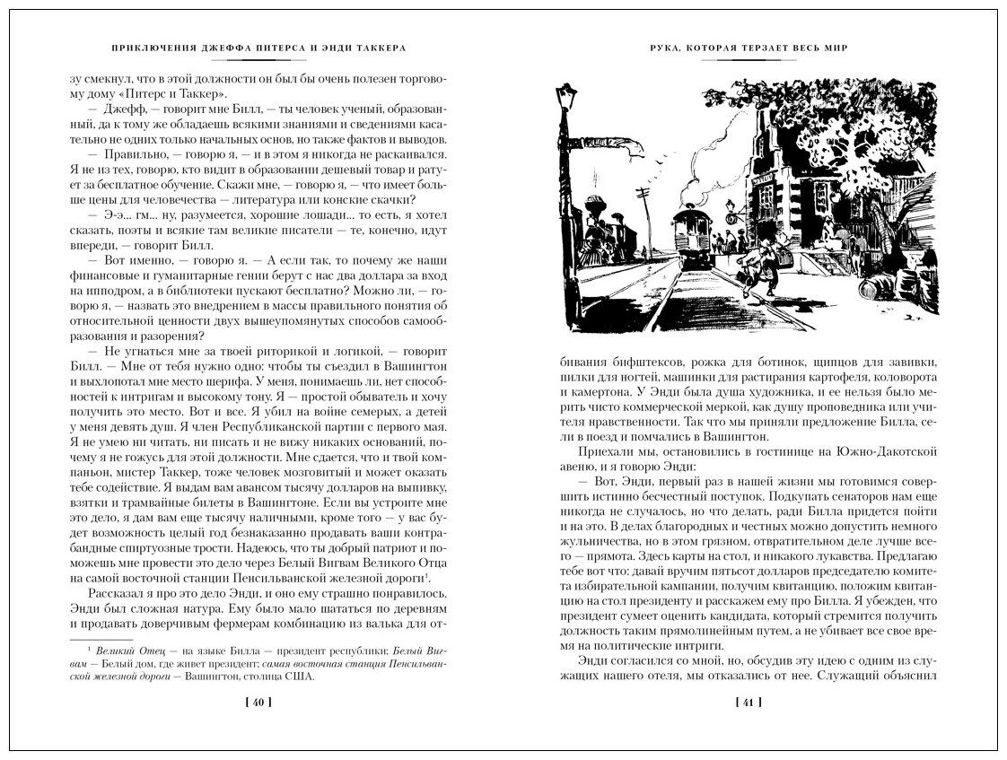 Издательство Азбука не перестает радовать переизданием замечательных произведений! Книга содержит все рассказы о Питерсе и Таккере. Присутствуют рассказы, отсутствующие в советском "желтом" собрании сочинении Генри. Имеются примечания внизу страниц. Иллюстрации малоразборчивые. Шрифт немного меньше среднего, но не мелкий. Книгой доволен.