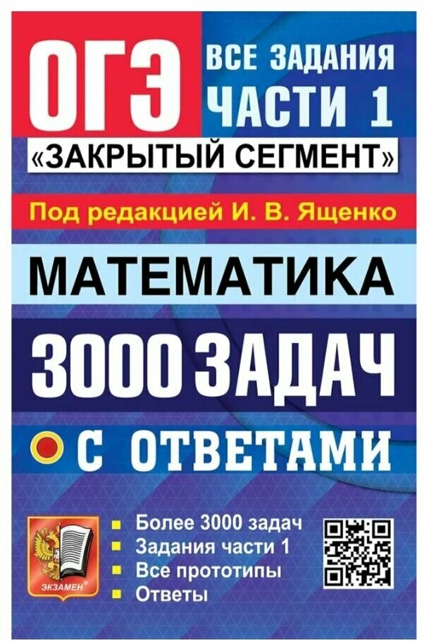 ОГЭ 3000 задач с ответами по математике Все задания части 1 Закрытый сегмент (Ященко Иван Валериевич); Экзамен Издательство, 2023