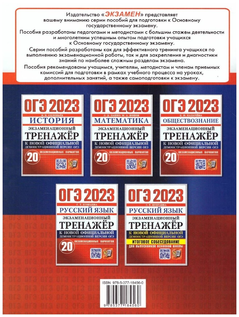 ОГЭ 2023 Русский язык Экзаменационный тренажер 20 экзаменационных вариантов (Егораева Галина Тимофеевна); Экзамен, 2023