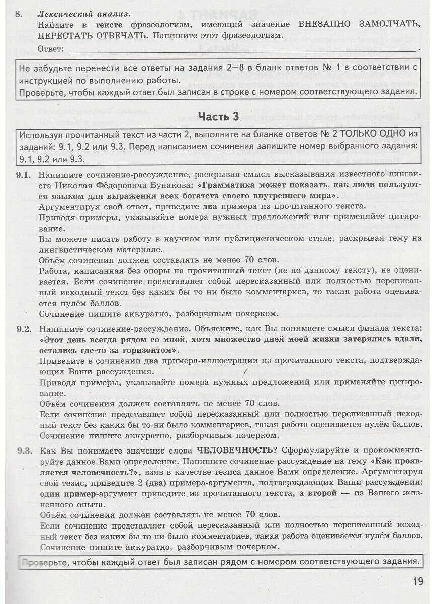 Предлагаемое пособие состоит из двух частей: 10 типовых вариантов экзаменационной работы Основного государственного экзамена и 10 типовых вариантов КИМ для проведения итогового собеседования. Назначение пособия - дать читателям представление о структуре и содержании КИМ по русскому языку, степени трудности заданий, оценить уровень подготовки к экзамену. В сборнике даны ответы ко всем вариантам тестов. Пособие адресовано девятиклассникам для самоподготовки и самоконтроля, а также учителям для подготовки учащихся к экзамену по русскому языку.