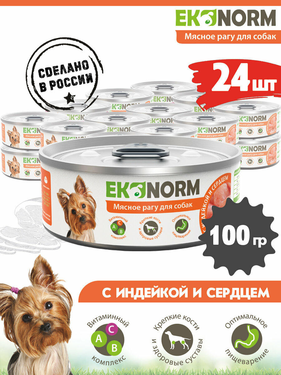 Сервис сравнения цен СкидкаГИД предлагает сравнить цены на товар «Влажный корм для собак Ekonorm Мясное рагу с индейкой и сердцем 100г»