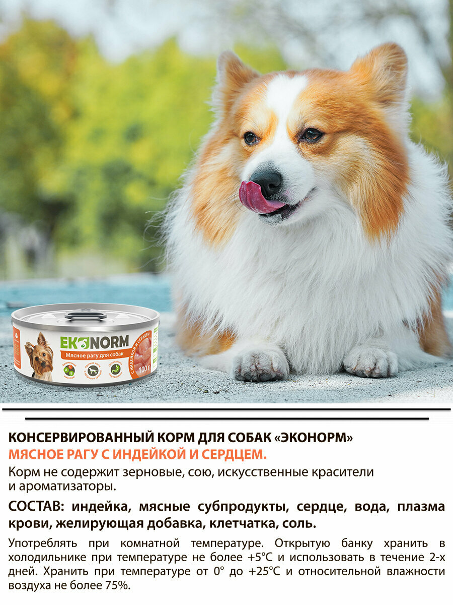 Влажный корм для собак Ekonorm Мясное рагу с индейкой и сердцем 100г