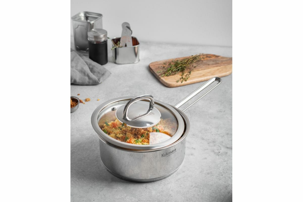 Ковш из нержавеющей стали идеален для приготовления каш и соусов, а также для разогрева небольших порций ранее приготовленной еды. Кроме того, ковш станет отличным помощником для приготовления и первых, и вторых блюд для небольшой семьи.