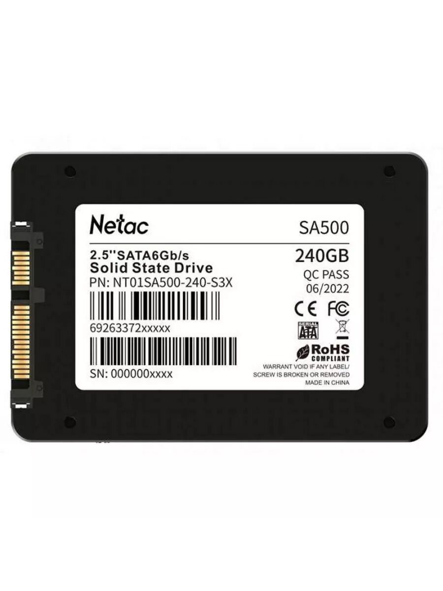 Накопитель SSD 2.5'' Netac SA500 240GB SATA 6Gb/s TLC 3D NAND 520/450MB/s NT01SA500-240-S3X