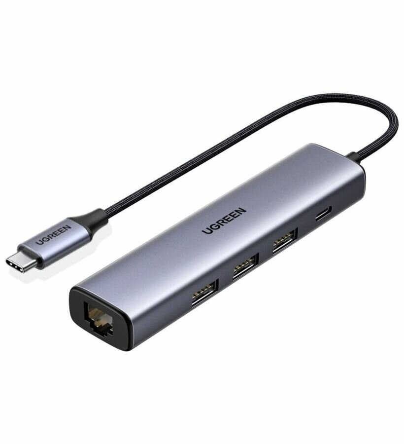 Адаптер UGREEN CM475 (20932) USB-C Multifunction Gigabit Ethernet Adapter with PD серый космос