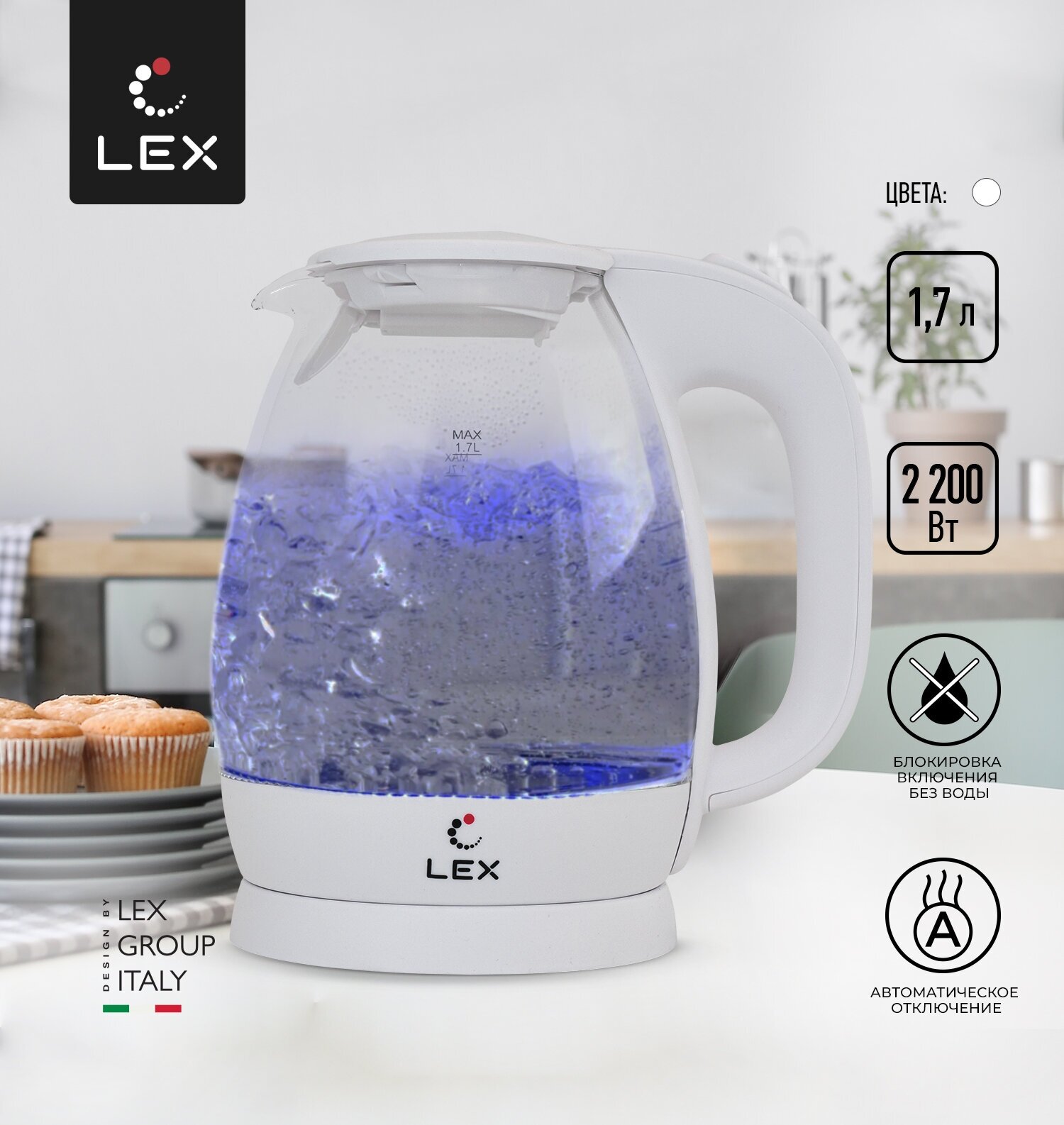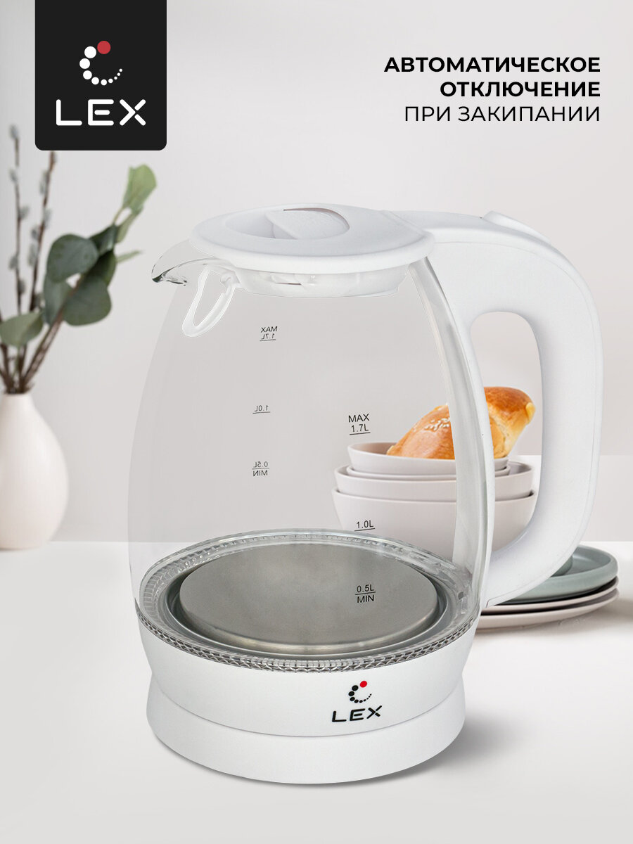 чайник LEX LX3002-3 2200Вт 17л стекло белый (LX 3002-3)