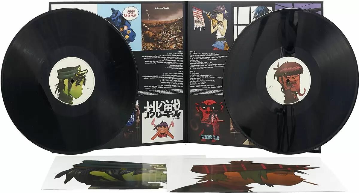 - Классический альбом Gorillaz. Хорошее качество печати, пластинки без шума. Цена получилась лучшая на котофото.