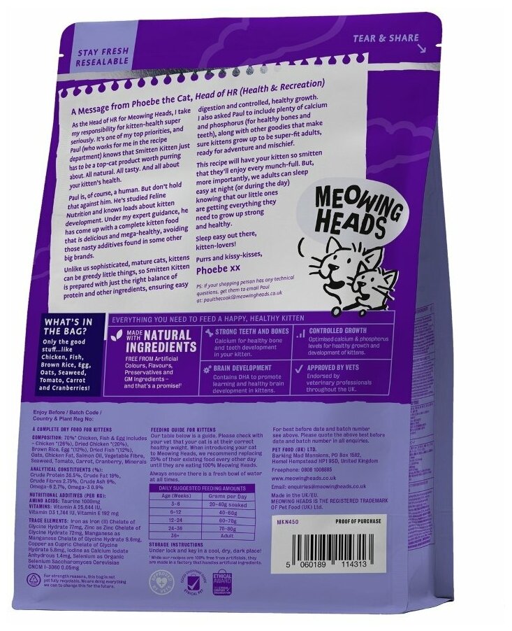 Рецепт корма для котят "Восторженный котенок" специально создан чтобы удовлетворить все потребности растущего котенка. Этот потрясающе вкусный рецепт создан из 100% натуральной курицы и рыбы, с использование только самых высококачественных натуральных ингредиентов. Одобрен ветеринарами. Этот полнорационный корм для котят поддерживает здоровье костей и зубов и способствует развитию мозга. "Восторженный котенок" дополнен лапкиоблизывательной смесью коричнего риса и овощей и обязательно порадует нового члена вашей семьи. Сделан из 100% натуральной курицы и рыбы. Сильные зубы и кости. Здоровый рост. Развитие мозга. Одобрено ветеринарами.