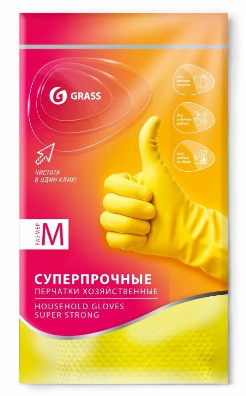Перчатки хозяйственные латексные. Суперпрочные. Пара. Желтые. Размер M Grass IT-0741