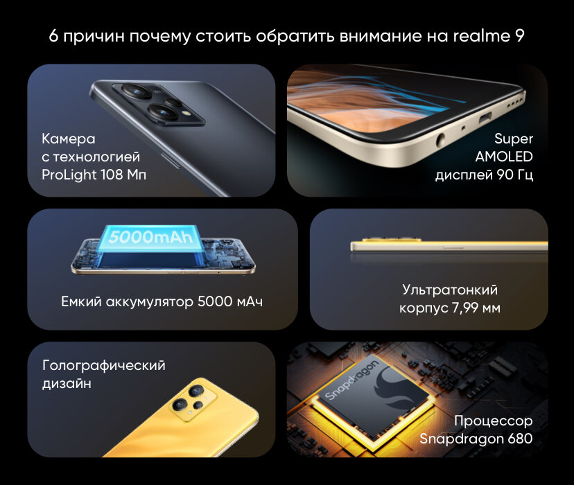 - Купили Смартфон realme 9 8/128GB Белый. Достоинства: -Шустрый -хорошая камера, -звук, -большой экран, -лёгкий.