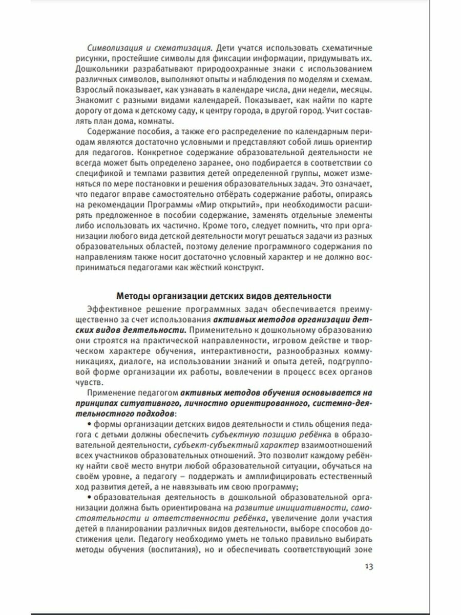 Пособие входит в базовый методический комплект Комплексной образовательной программы дошкольного образования "Мир открытий" (Под ред. Петерсон Л. Г., Лыковой И. А.), обеспечивает реализацию двух направлений деятельности педагогов с детьми средней группы в рамках образовательной области "Познавательное развитие": формирование у дошкольников целостной картины мира, расширение кругозора; развитие познавательно-исследовательской деятельности. В издании представлены методические рекомендации по ознакомлению детей 4-5 лет с окружающим миром, содержание и система планирования работы по разделу, конспекты современных форм организации детских видов деятельности. В приложении дан тезаурус педагога дошкольной образовательной организации, представлены примеры образовательных проектов познавательной направленности для реализации в летний период. Пособие предназначено для использования в дошкольных группах образовательных организаций, реализующих образовательные программы дошкольного образования, в том числе семейных группах и группах кратковременного пребывания. Материалы издания адресованы педагогическим работникам дошкольных образовательных организаций, преподавателям и студентам педагогических вузов, колледжей, специалистам методических служб, родителям.