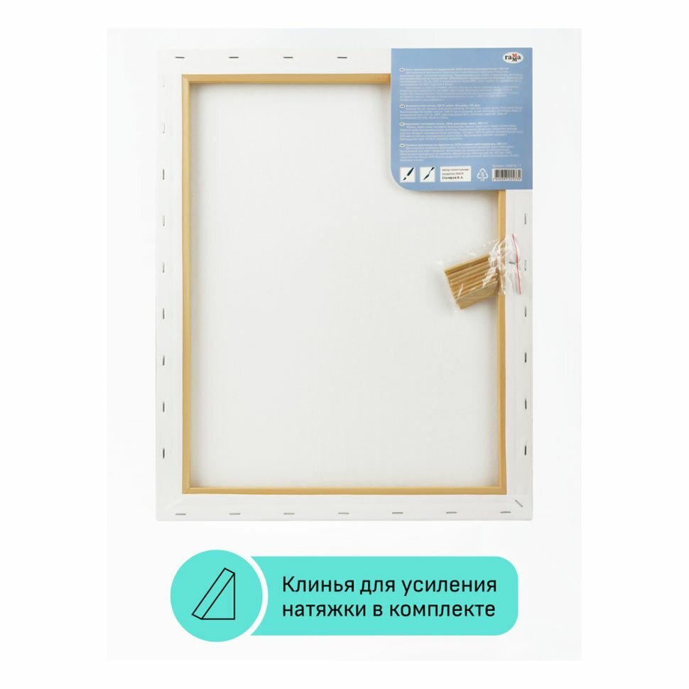 Набор хлопковых грунтованных холстов на подрамнике ГАММА серии «Студия», подходит для живописи масляными, акриловыми, темперными и гуашевыми красками. В наборе 3 холста размером 40*50 см. Основа – натуральное полотно, 100% хлопок, мелкое зерно. Холсты прямоугольной формы плотностью 280 г/м2. Холсты покрыты акриловым грунтом, а подрамники выполнены из сосны. Изготовлены без использования кислот.