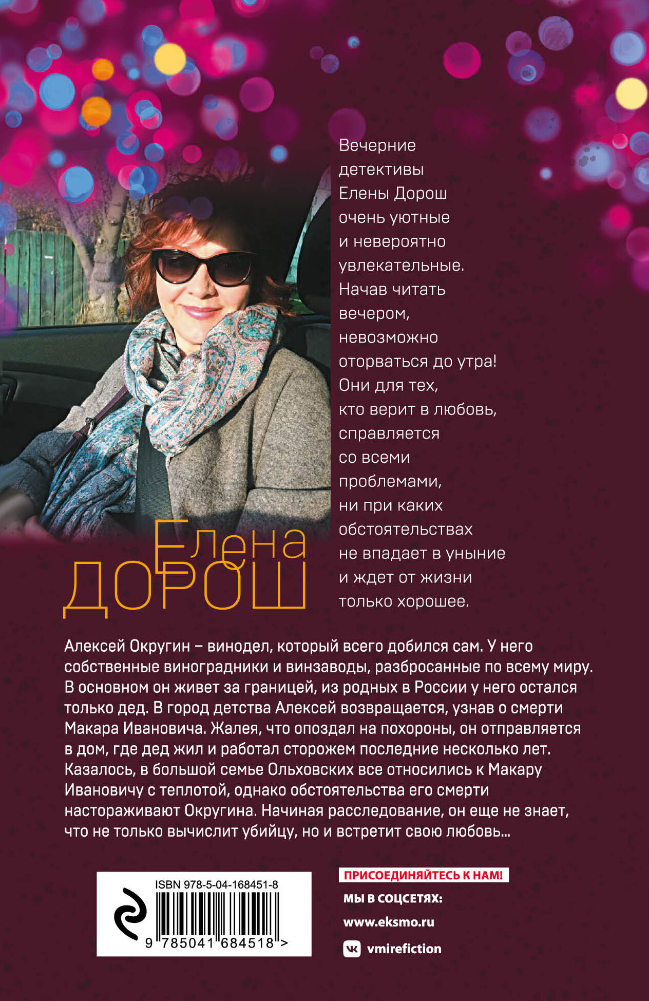 Книга очень понравилась. Елена Дорош стала моим новым любимым автором. Сюжет увлекательный. Всё здесь есть и детектив и любовь. А концовка вообще неожиданная, до последнего не понятно, кто убийца. Роман читается на одном дыхании. Самое главное захватывает с первых страниц. Вообщем, советую - покупайте и читайте. Я купила уже три книги этого автора. С нетерпением буду ждать новинок.