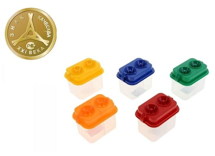 Стакан-непроливайка двойной, 350 мл, «Премиум», микс. Стакан-непроливайка Премиум предназначен для промывания кисточек в процессе рисования. Имеет два отделения: одно предназначено для смывания краски, другое - для ополаскивания кисточки в чистой воде. Стакан комфортен и вместителен, благодаря прямоугольной форме и оптимальному размеру 110 х 80 х 90 мм. Заглушки-клапаны на крышке надёжно закрывают отверстия и предотвращают выливание жидкости в любом положении стакана. Объём каждого отделения по 175 мл (линии уровня воды нет).Яркие крышки - ассорти из 5 цветов.Серия: Премиум.Количество отделений: 2.Материал: полипропилен.Наличие заглушек: есть.Цвет крышки: ассорти.Цвет стакана: прозрачный белый.(1035840)