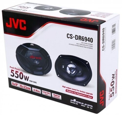 Четырехполосная коаксиальная автомобильная акустическая система JVC серии drvn с коническим динамиком из углеволокна с включением слюды прекрасно подходит для замены штатной акустики в вашем автомобиле.