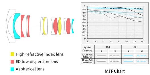 | Конструкция объектива | 14 элементов в 11 группах (2 асферических, 4 ED низкодисперсионных, 2 HR с высоким коэффициентом рефракции) |
