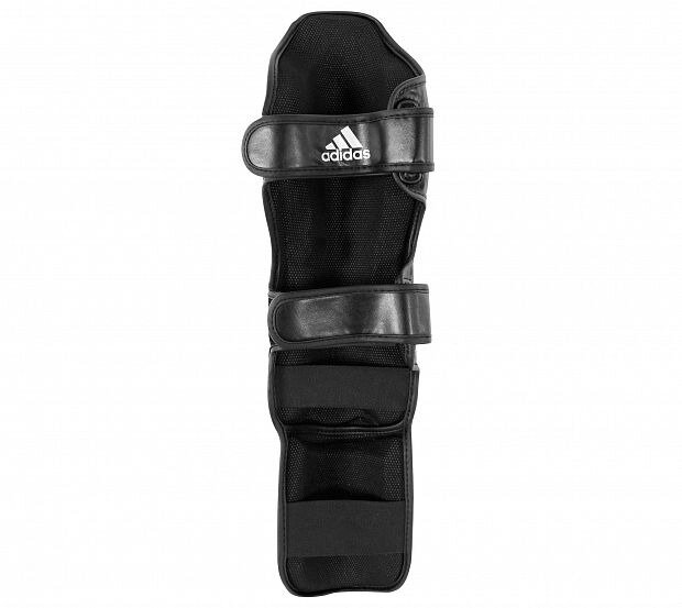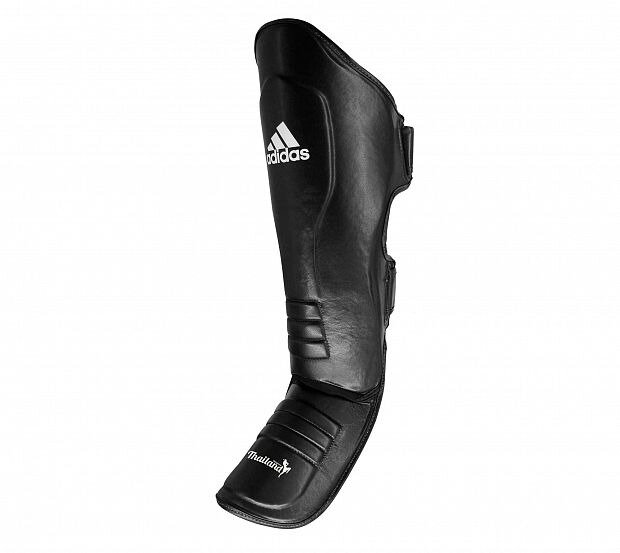 Защита голени и стопы Muay Thai Shin Instep Leather черно-белая Adidas (adiGSS011T) (размер: XL)