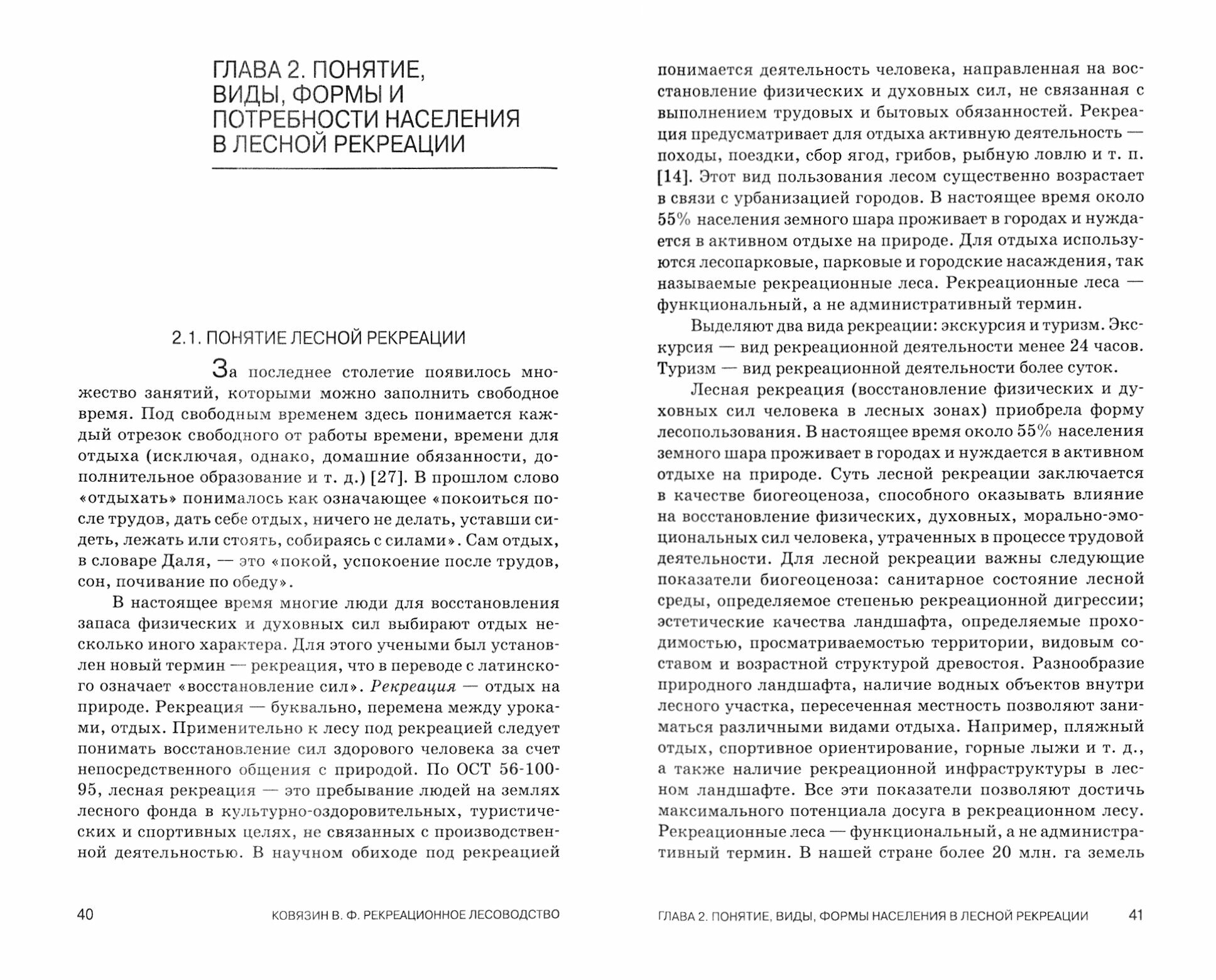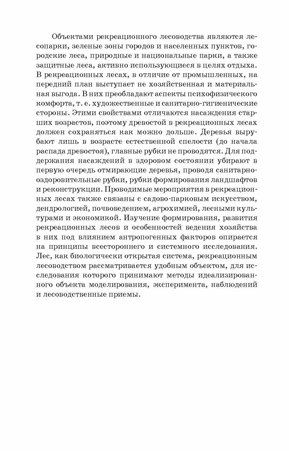Изложены особенности природных рекреационных ресурсов, виды и формы лесной рекреации, раскрыто многоцелевое использование рекреационных лесов, их экологическое состояние и социальные и экологические аспекты рекреационного лесопользования и инвентаризации. Сформулирована цель и задачи рекреационного лесоводства, методы и единицы измерения рекреационных нагрузок на лесные экосистемы. Обоснованы ландшафтно-лесоводственные мероприятия в рекреационных лесах, приведены системы лесоводственных и биотехнических мероприятий, способы создания благоприятных условий для отдыха населения в лесу. Рассмотрены вопросы просветительской деятельности и необходимости разработки рекреационного кадастра лесных ресурсов.