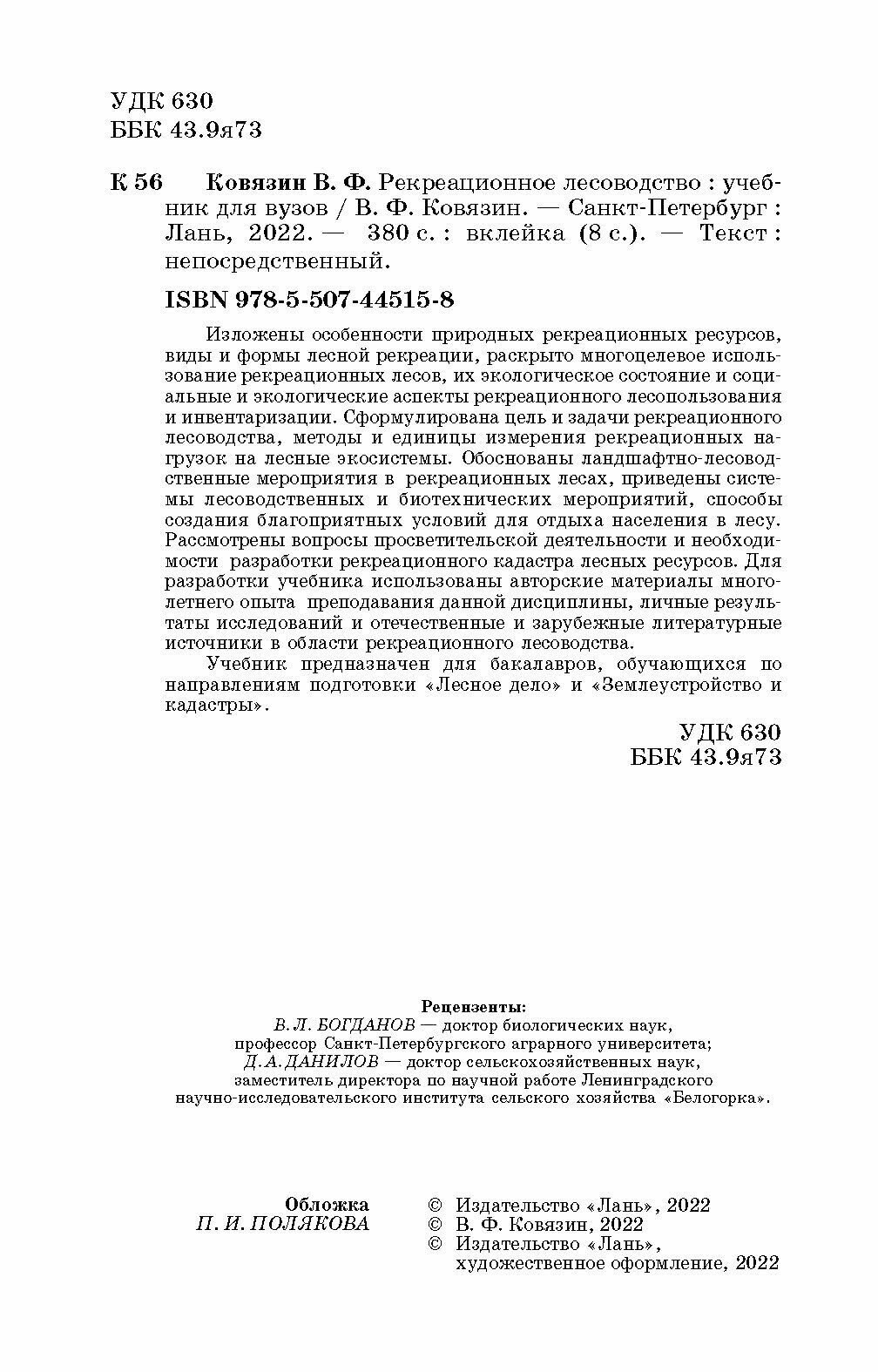 Сервис сравнения цен СкидкаГИД предлагает сравнить цены на товар «Книга: Рекреационное лесоводство. Учебник (Ковязин Василий Федорович); Лань, 2022»