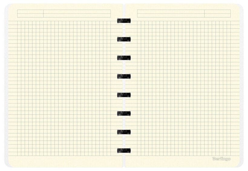 Увеличенная толщина обложки (700мкм). Белый цвет внутренней поверхности. Материал обложки - полипропилен, защищает внутренний блок от влаги, замятия и загрязнения, обложка устойчива к загрязнениям. Вид скрепления - стильные имиджевые черные кольца, с возможностью раскрывать тетрадь на 360%. Возможна замена бумажного блока и быстрая и удобная выемка/вставка листов без повреждений.
