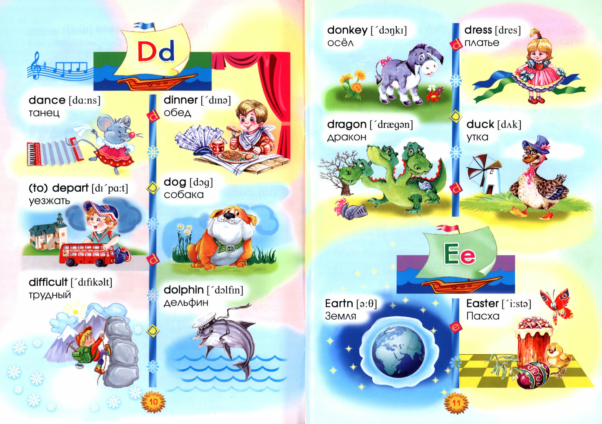 Эта красочная книга станет первым шагом в овладении английским языком. Деление лексики по темам, наличие фонетической транскрипции и словаря делают пользование изданием не только удобным, но максимально эффективным.