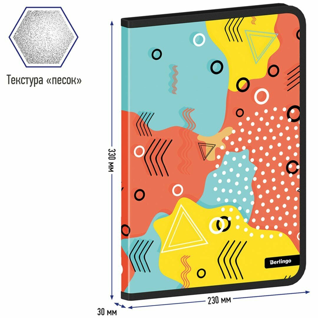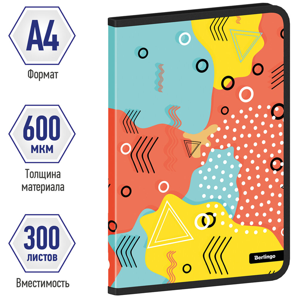 Папка пластиковая на молнии Berlingo "Memphis" формата А4 с рисунком. Яркий дизайн коллекционной серии Berlingo "Memphis". Данная папка станет функциональным помощником для хранения и транспортировки документов. Изготовлена из высококачественного полипропилена толщиной 600 мкм с матовой текстурой поверхности "песок", на которой не видно отпечатков пальцев и мелких царапин. Цвет канта - черный. Размер папки составляет 330х230х30 мм., ориентация - горизонтальная. Надежная молния с мягким ходом защищает документы от повреждений и загрязнений. Молния обеспечит быстрый доступ к содержимому.
