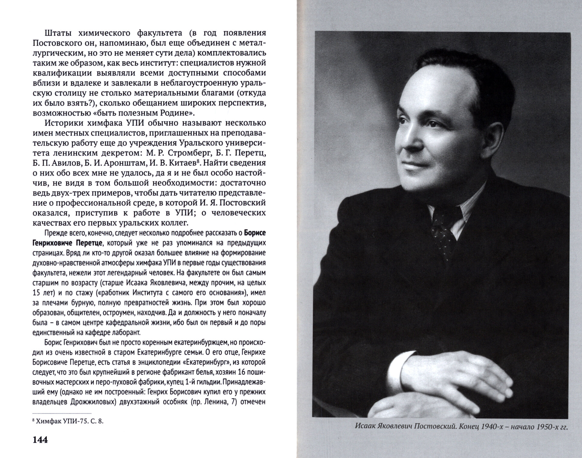 Академик И. Я. Постовский (1898-1980) - ученый с мировым именем, основоположник уральской школы химиков-органиков, учитель и наставник целой плеяды ученых и организаторов науки, и химических производств, определивших лицо химической отрасли на Урале, начиная с тридцатых годов прошлого века и по сей день. Его имя почитаемо и специалистами, и широкой общественностью. В честь его названы академический Институт органического синтеза и одна из улиц на юго-западе Екатеринбурга.