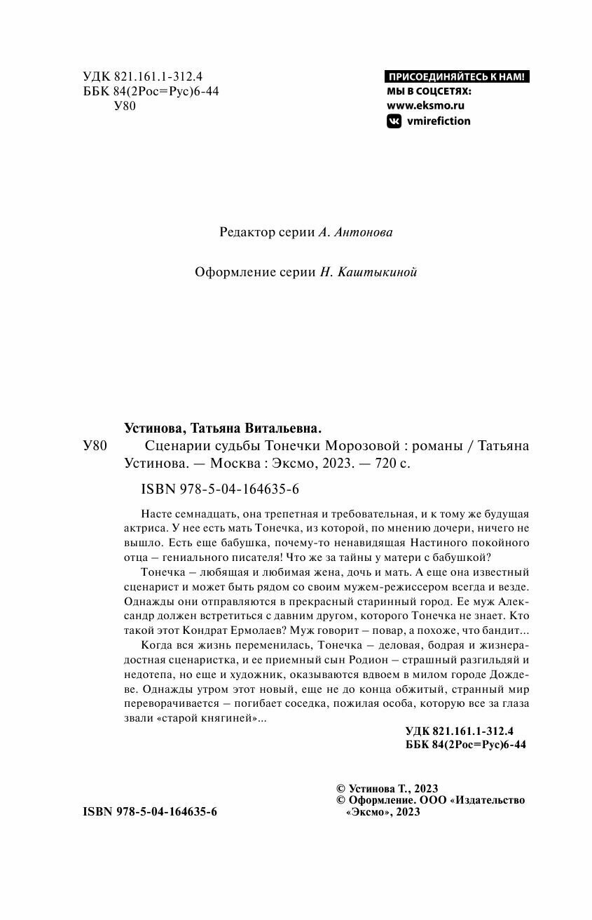Сценарии судьбы Тонечки Морозовой (Устинова Татьяна Витальевна); ООО "Издательство "Эксмо", 2023