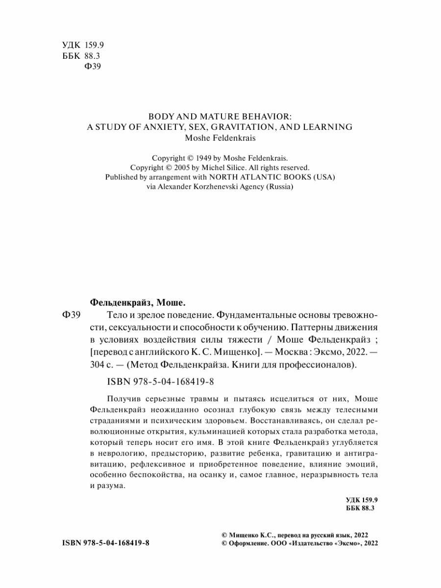 Тело и зрелое поведение. Фундаментальные основы тревожности сексуальности и способности к обучению. Паттерны движения в условиях воздействия силы тяжести (Моше Фельденкрайз); Эксмо, МЕДПРОФ, 2024